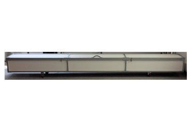 Case per contenimento schermo Fenix, realizzato in alluminio anodizzato argento con tamponature in melamminico 4mm. colore bianco alpino. Coperchio incernierato ad apertura manuale, completo di maniglia e serrature predisposte per l’applicazione di lucchetti.